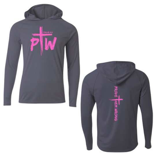 Graphite Hooded Long Sleeve Tee with Prove Them Wrong Spine