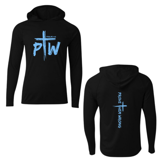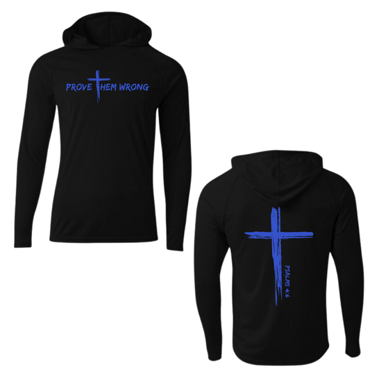 Black Hooded Long Sleeve Tee with Prove Them Wrong Spine