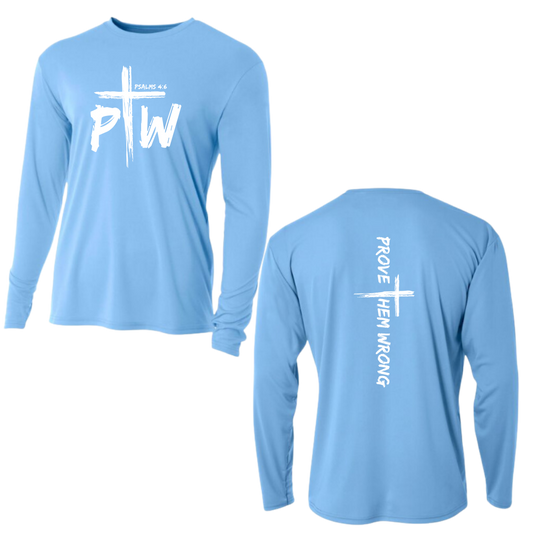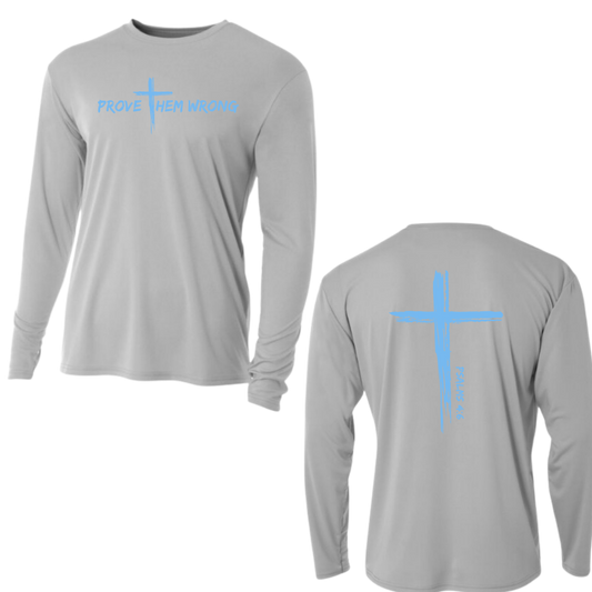 Light Blue Long Sleeve Tee with Prove Them Wrong Spine