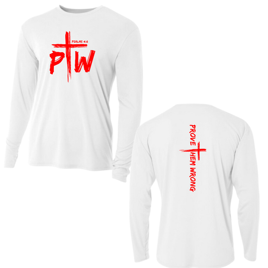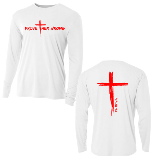 White Long Sleeve Tee with Prove Them Wrong Spine