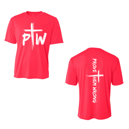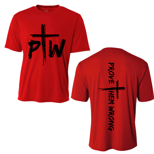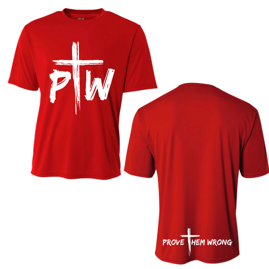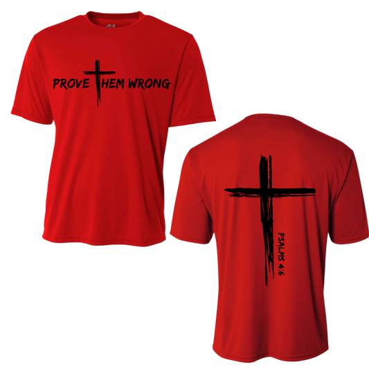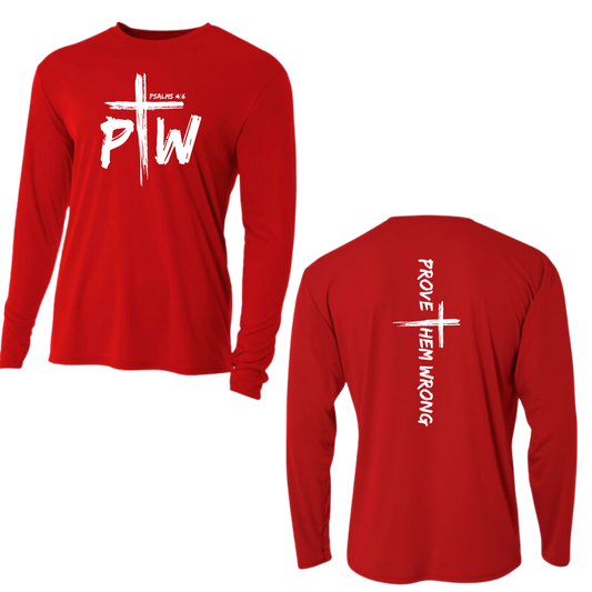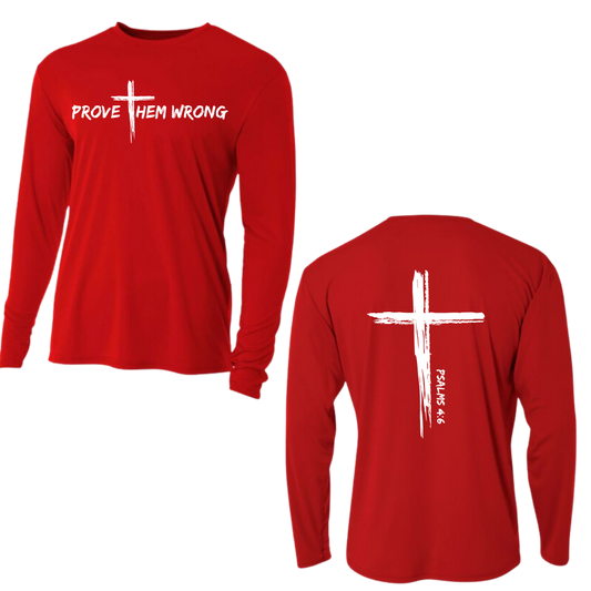 Red Long Sleeve Tee with Prove Them Wrong Spine