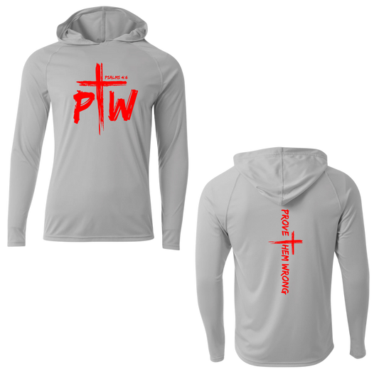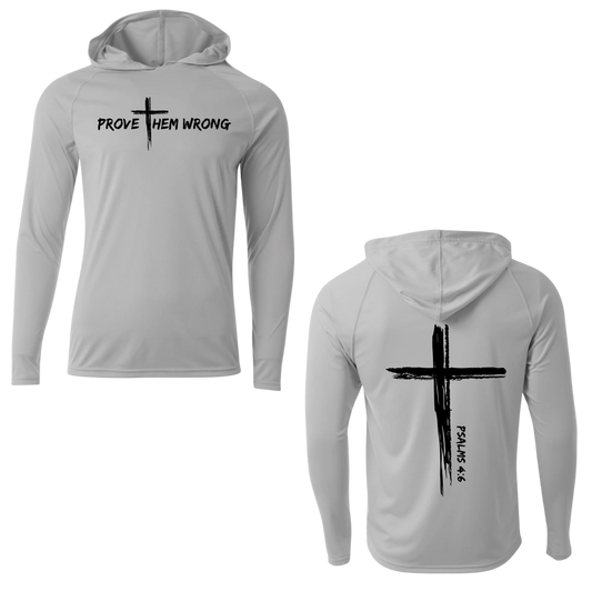 Silver Hooded Long Sleeve Tee with Prove Them Wrong Spine