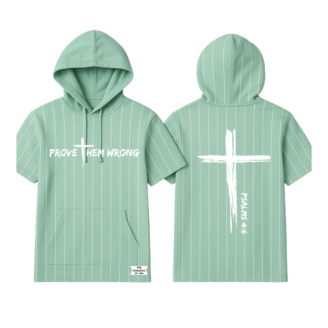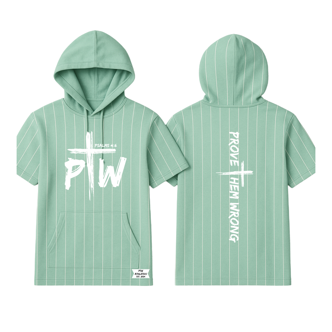 A clean sage green hoodie with crisp white pinstripes bring faith, focus and fresh style in one.